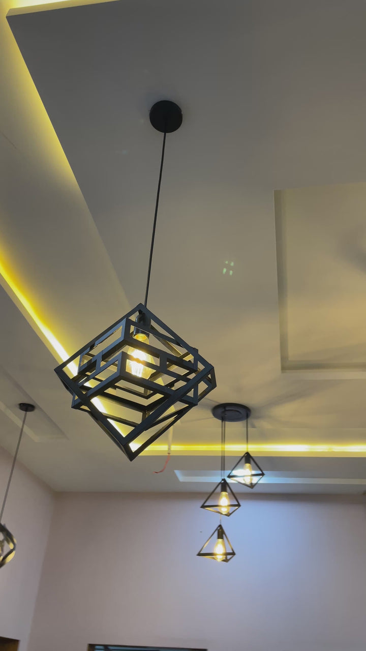 Diamond Shape Hanging Light – Industrial Geometric Pendant Lamp Add elegance and industrial charm to your décor...