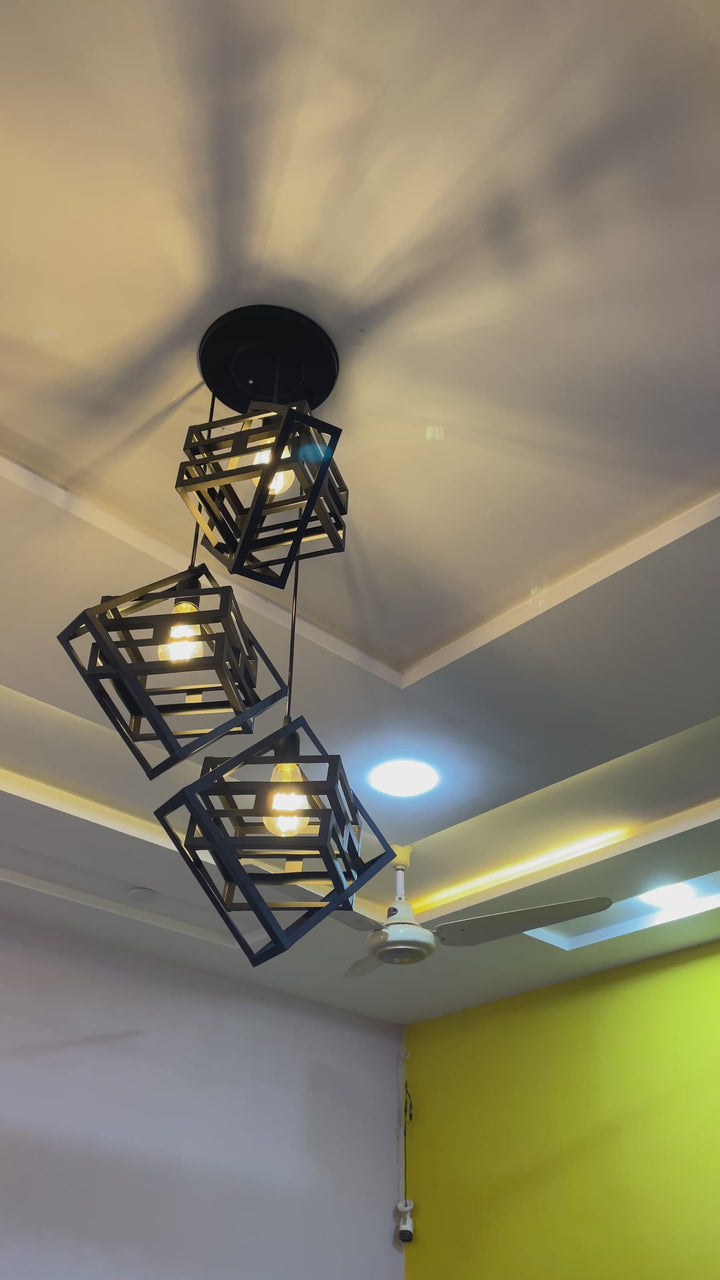 Black Square Cube Hanging Light – Modern Industrial Style Add a bold modern twist to your home...