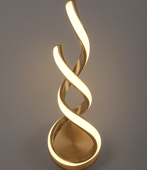 Illuminate your space with a perfect blend of modern art and functional lighting. This spiral LED wall light features a stunning twisted ribbon design crafted in a golden metallic finish, offering a soft yet radiant glow that enhances the aesthetic of any interior. Its elegant curves and ambient warm lighting make it a statement piece for luxury homes, hotels, and designer interiors.