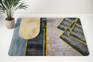 Featuring a contemporary geometric pattern with gold accents, it adds a touch of sophistication to any space while ensuring comfort and safety. The highly absorbent surface keeps your floors dry, and the reinforced anti-slip backing provides secure grip on all surfaces. Perfect for entryways, living rooms, or workspaces, this versatile mat enhances both style and practicality.
